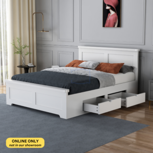 The Conway 4 drawer bed frame from Flintshire is popular due to it’s unique design. With the added benefit of 4 storage drawers this wooden bed frame would make a great addition into many bedrooms, especially as it’s available in either grey or white.