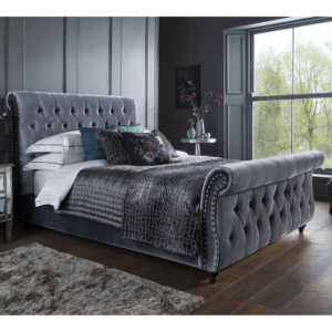 A stunning sleigh bed frame in titanium grey. Need we say more? ..