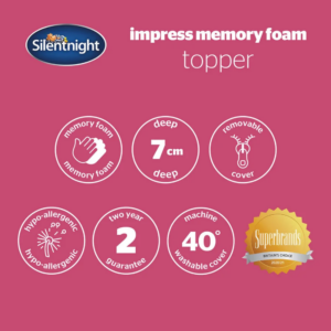 The Impress Memory Foam Mattress Topper by Silentnight has been designed to offer both soothing pressure relief and ultimate comfort.