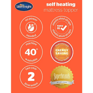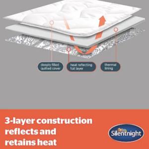 The Silentnight Self-Heating Mattress Topper features a unique heat reflecting foil combined with a thermal lining and deeply filled quilted top layer to add up to 7.5 tog of extra warmth to your bed.