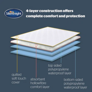 The Silentnight Supersoft Waterproof Mattress Protector helps to shield your mattress against spillages, accidents and wear and tear. The double-sided polypropylene waterproof layer lies at the bottom of the protector and provides ultimate protection, whilst the hollowfibre filling and quilted microfibre cover will provide luxurious comfort.
