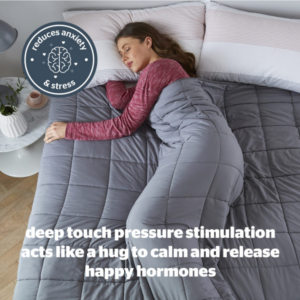 Introducing calm, relaxation and a great big hug, all wrapped up in one comfortable blanket. The Silentnight Wellbeing Weighted Blanket is natural sleep therapy at its best. Stress Less, Sleep Well, Wake Up Happy! If your mind races at night, or if your legs feel restless, a weighted blanket could be the answer. A weighted blanket helps to foster a sense of stillness and calm, in the same way tight swaddling helps new-born babies feel snug and secure so they can doze off more quickly. By applying gentle pressure all over your body, the blanket feels a little like a comforting hug, all night long – helping your body and brain to switch off for the night. So it’s no wonder that weighted blankets have been shown to ease muscle tension, reduce stress hormones, and increase the release of happy hormones (serotonin and melatonin), for better, deeper sleep all round.