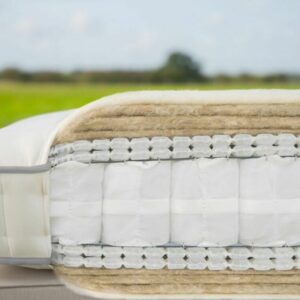 The Jade Mattress has two rows of side stitching within a 25cm boarder boasting an overall depth of approximately 34-36cm, made with a British Wool & Viscose Blend, British Wool, Hemp & Flax Blend, Cotton, HD 2500 Micro Springs, Posturfil Pocket Springs, Cortec™ Quad Pocket Springs.